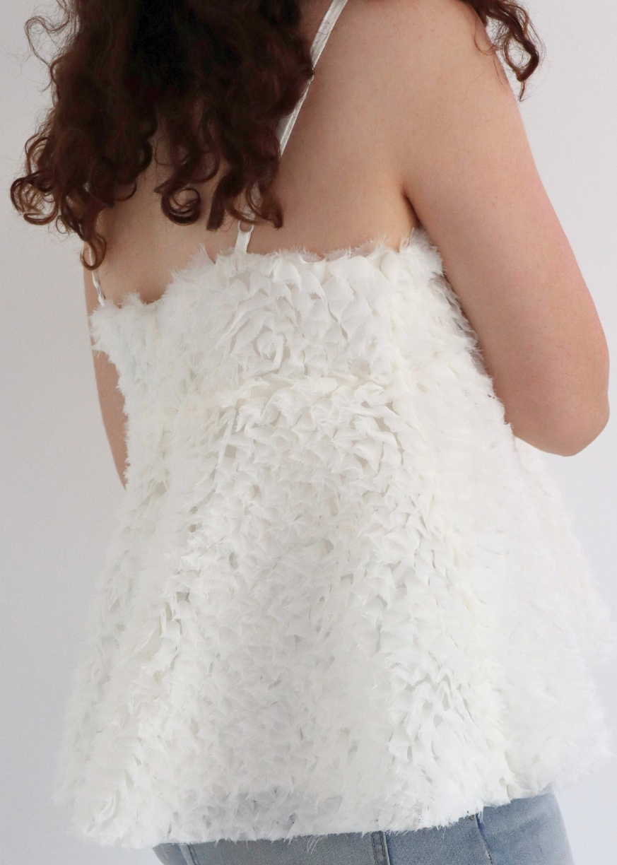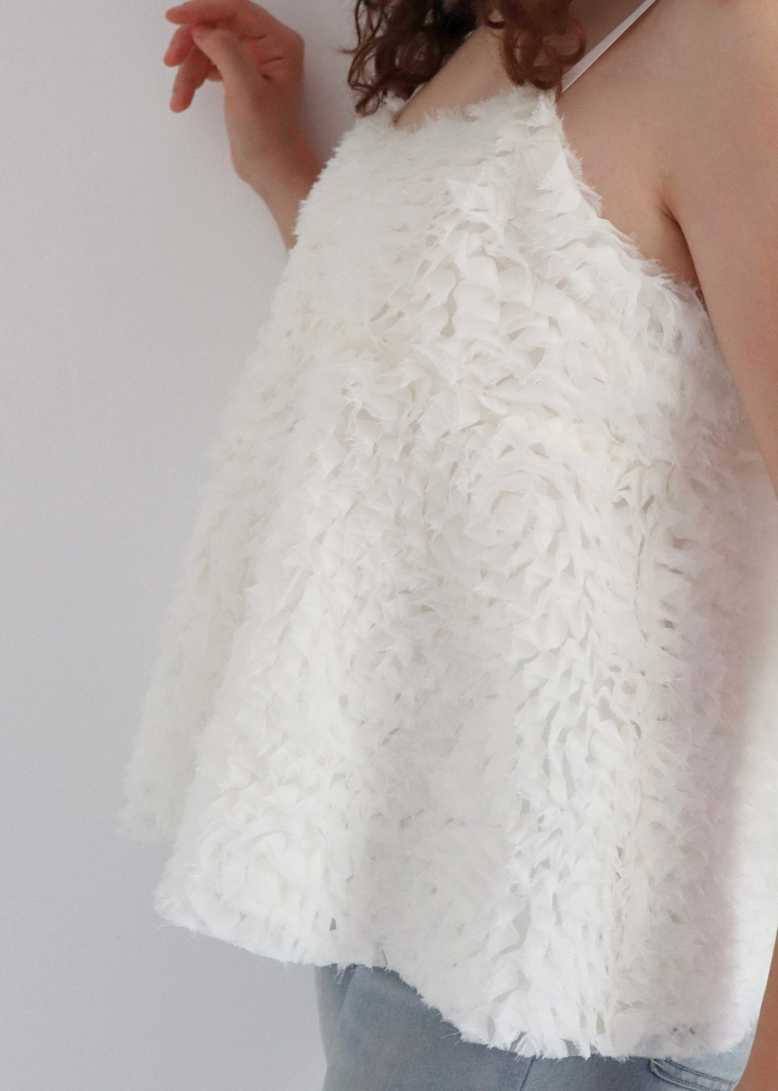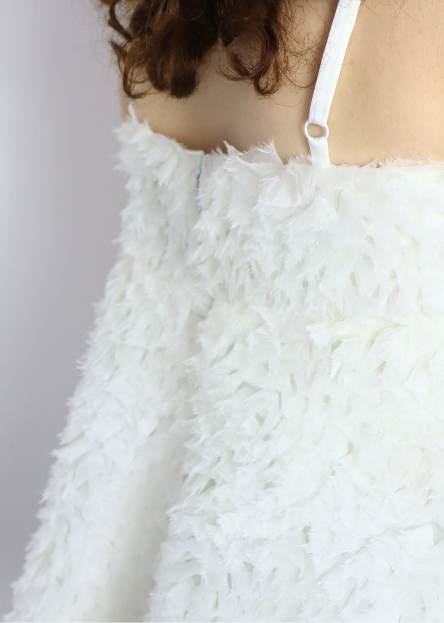 Elevate your look with the Petal – Elegant White Tulle Top. Made from delicate embroidered white tulle, this airy top features adjustable straps and a discrete zip closure for a flawless fit. Lightweight and feminine, it’s perfect for both casual and special occasions. Available in timeless white.